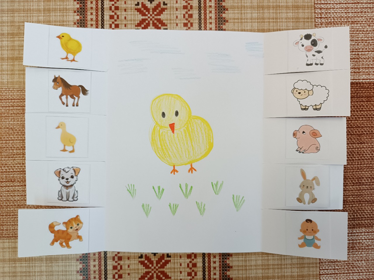 To jsou úvodní slova písničky, která nás provázela celou pohádkovou knihou při hledání jednoho ztraceného kuřátka. Přitom jsme počítali všechna zvířátka, s kočičkami lízali mlíčko, s koníky cválali, s ovečkami jsme motali vlnu, s kačenkami jsme se koupali v rybníku, s králíčky zase dupali… až jsme ztracené kuřátko našli. Dnešní dopoledne patřilo těm nejmenším a projektu Bookstart. Pomáhali jsme slepičce hledat jedno ztracené kuřátko. Při tvoření děti přiřazovaly zvířátkům jejich mláďátka.