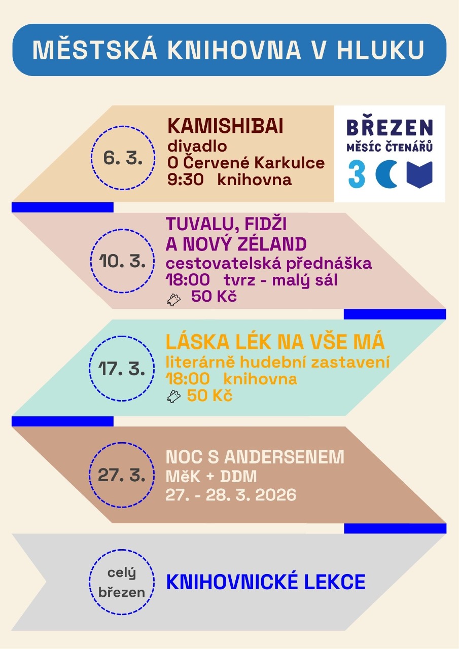 Současně bychom rádi informovali čtenáře, že příští týden, t.j. v týdnu jarních prázdnin, bude knihovna otevřena dle standardní otevírací doby. Tak neváhejte a přijďte si pro svou dávku čtenářské radosti či za kulturou.