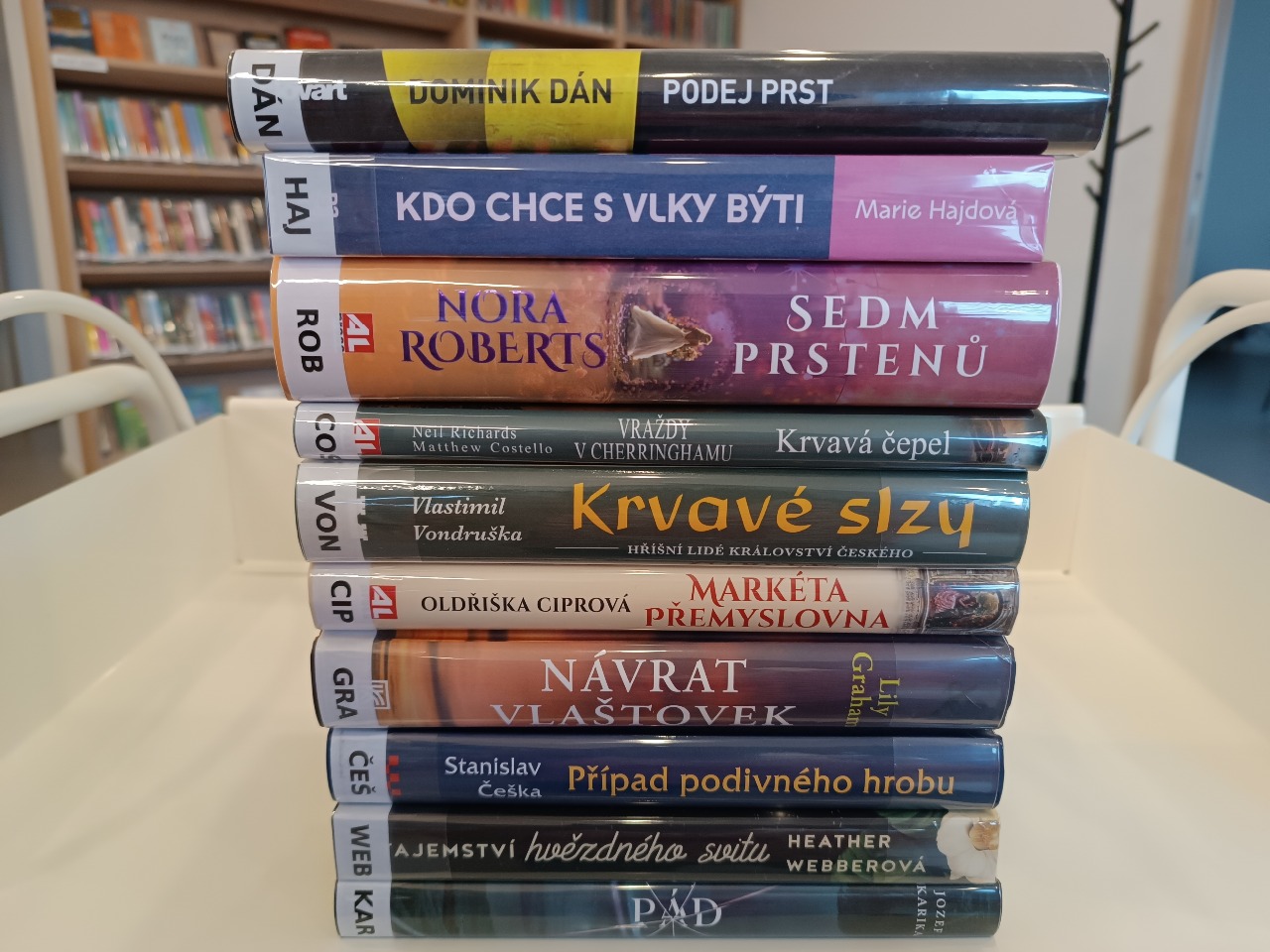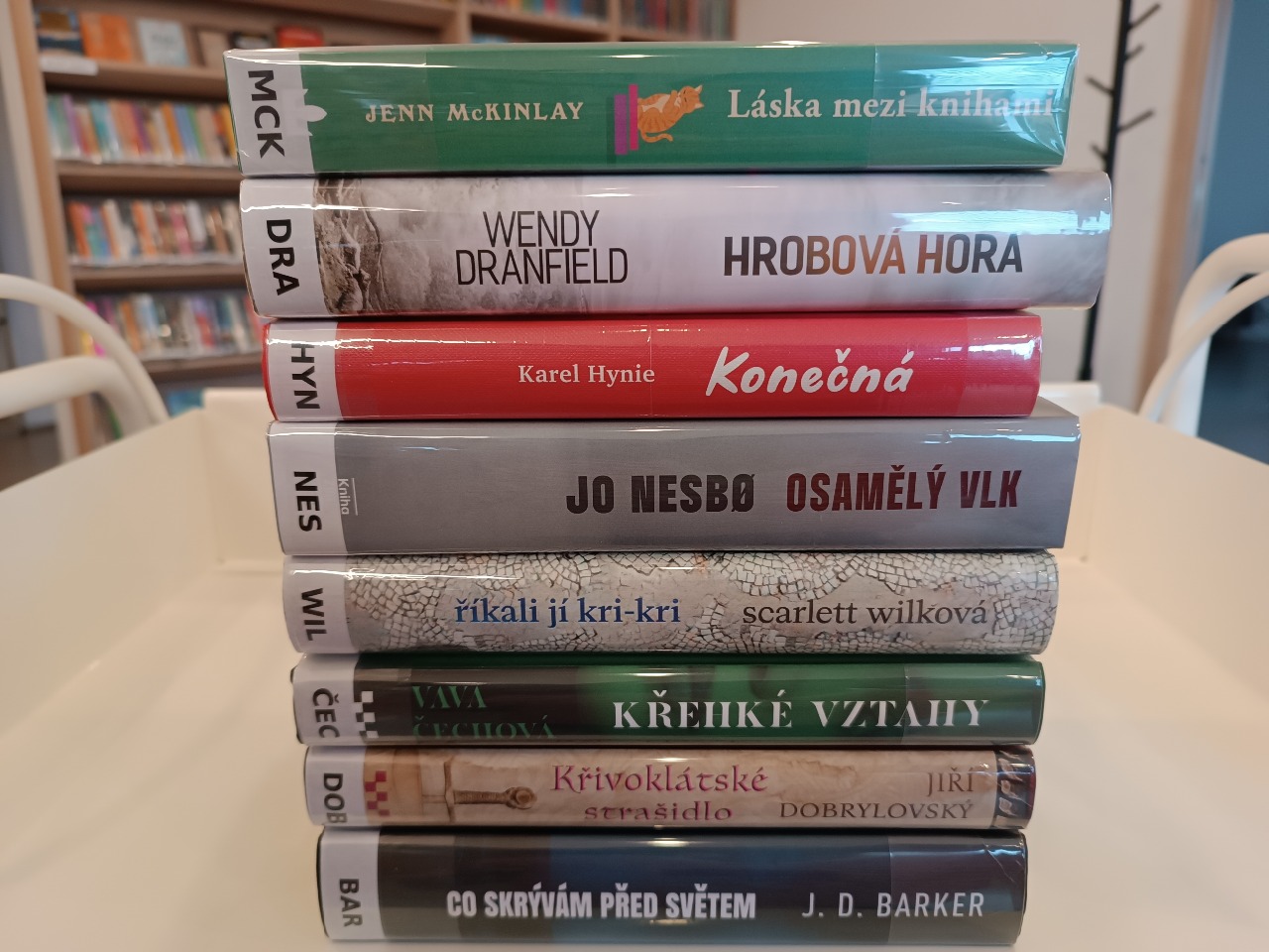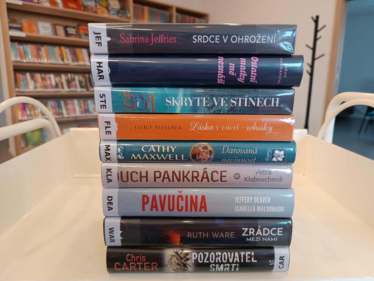 Máme nové knihy k vypůjčení. A vůbec jich není málo! Přijďte si do knihovny pro svou dávku čtenářské radosti :-).