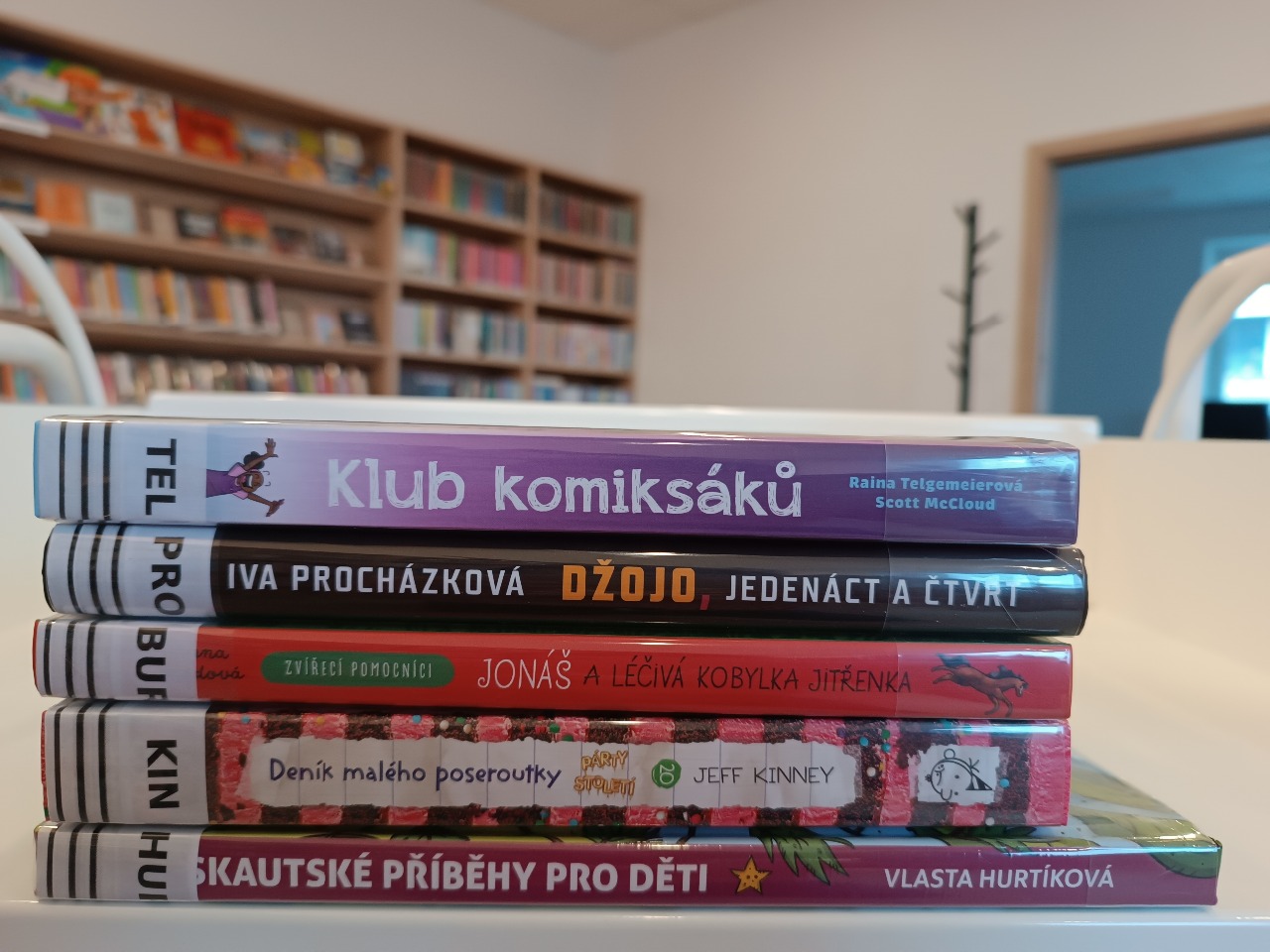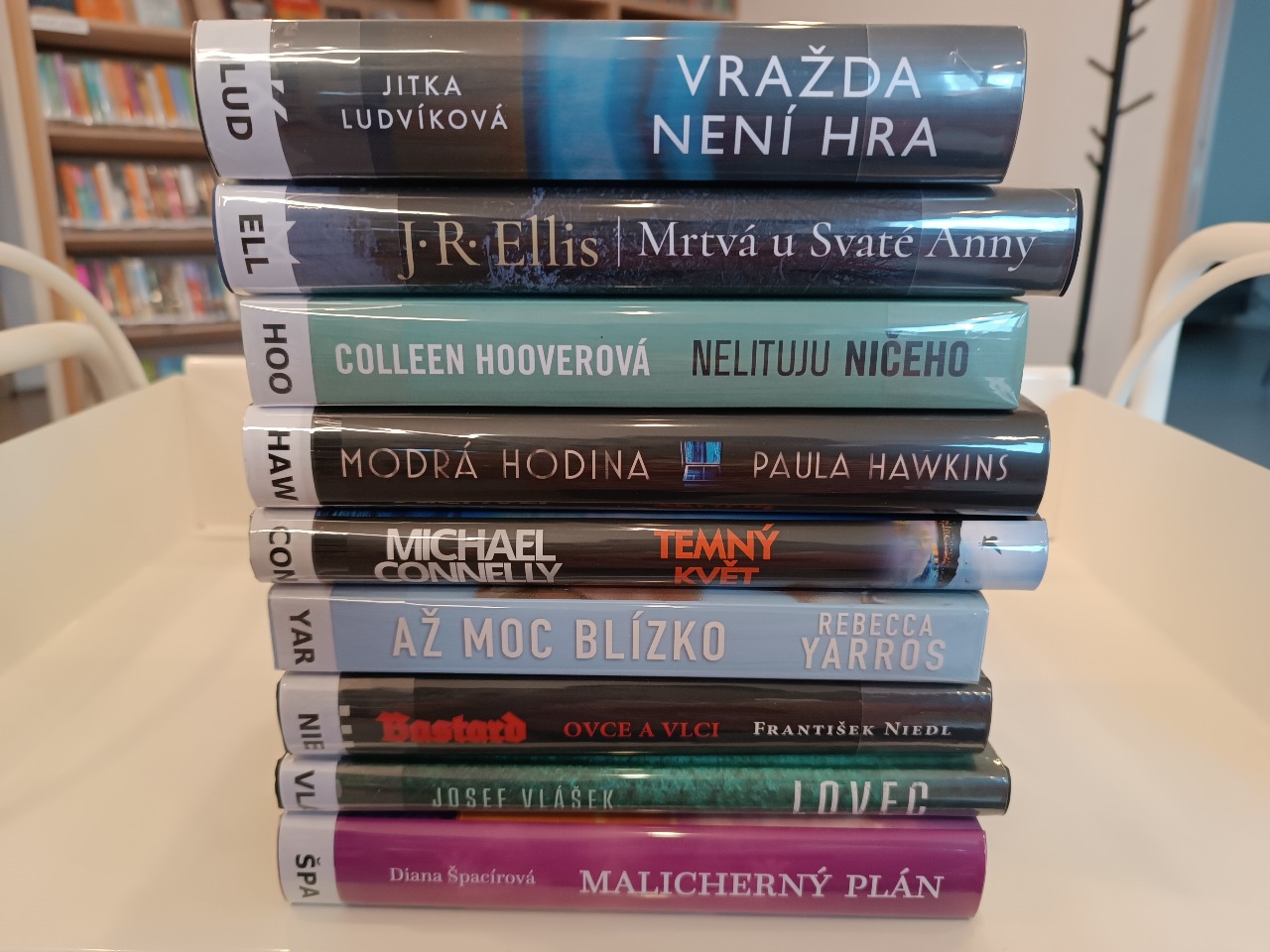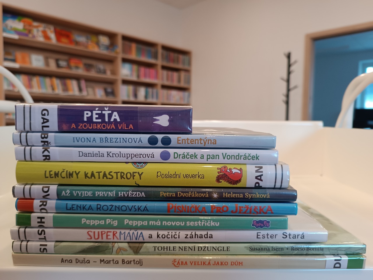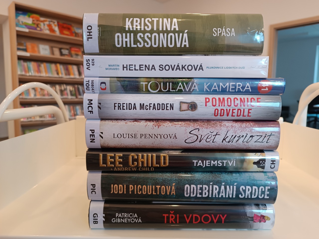 Máme nové knihy k vypůjčení. A vůbec jich není málo! Přijďte si do knihovny pro svou dávku čtenářské radosti :-).