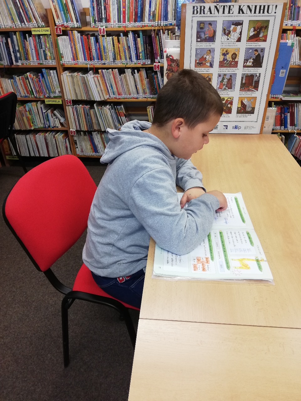 Děti se seznámily s historií a současností knihovny. Knihu z projektu "Už jsem čtenář - knížka pro prvňáčka" děti už dostaly na konci školního roku, proto jsme si společně poutavý příběh prvňáčků a jejich první školní výlet připomněli.