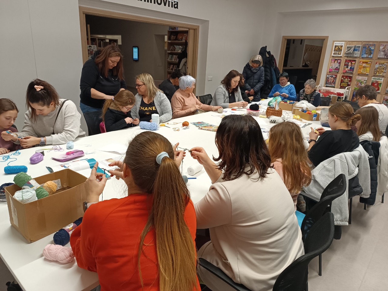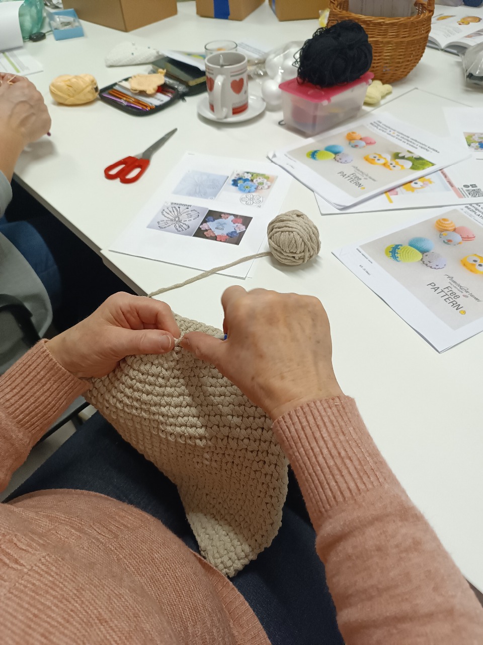 Včerejší podvečer v Centru 4K patřil přízím, háčkům a dobré náladě. Ve spolupráci se spolkem Pro radost Hluk se uskutečnilo další setkání z cyklu Šikovný háček. Tentokrát byla na programu výroba jarních dekorací. Bylo úžasné sledovat, jak se u jednoho stolu sešly ženy napříč generacemi – od mladých začínajích dívek až po zkušené babičky.